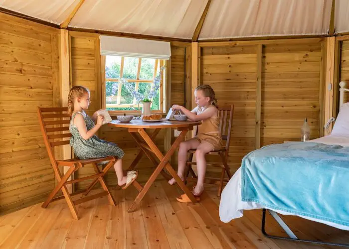 Our Family Glamping enables you & the kids to enjoy the whole camping experience of our superb 5* camping park, whilst staying in luxury and having none of the hassle of setting up and packing away your own tent! Our Family Glamping is conveniently located close to the amenities and fully equipped for a stress free stay. There’s even a swing ball in the garden!