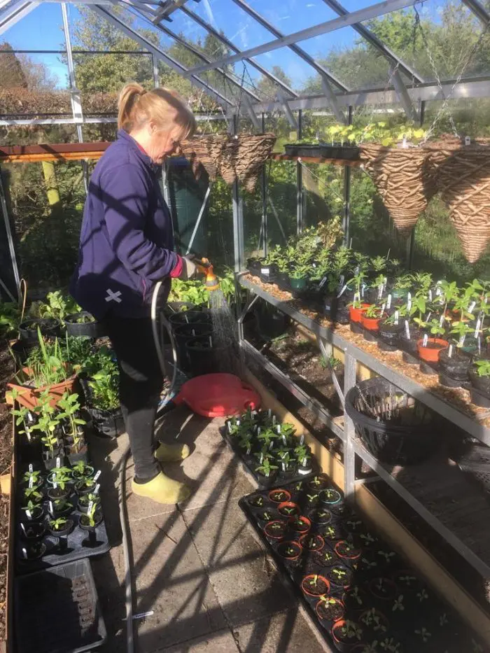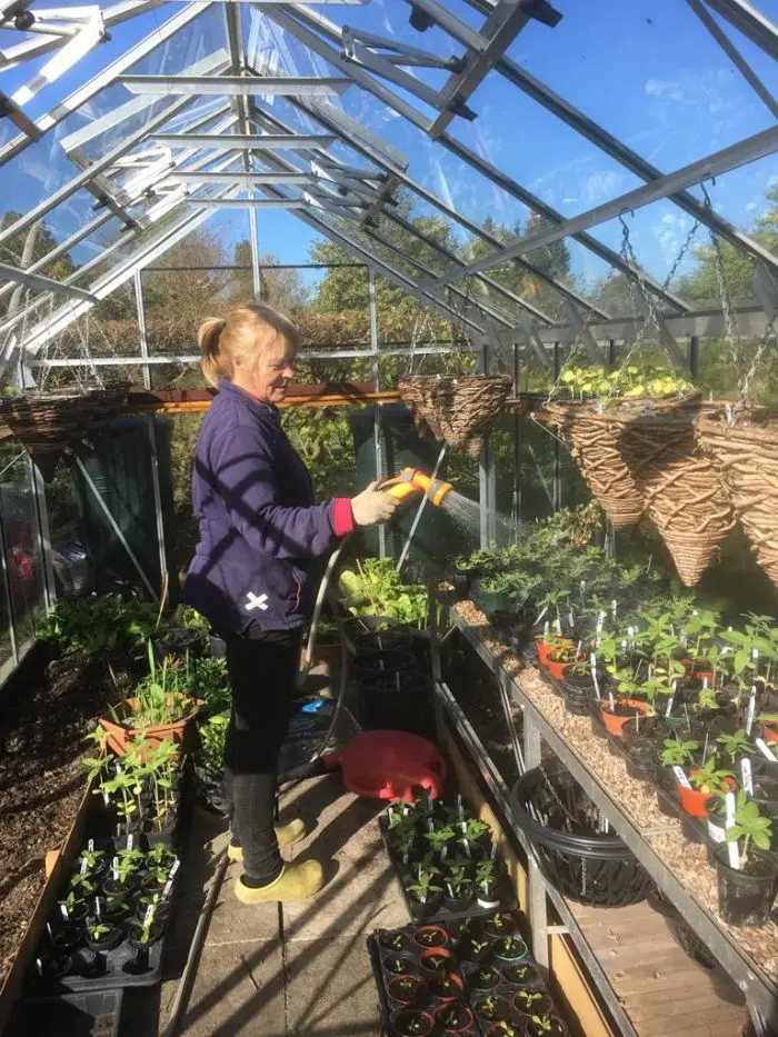 Broadhembury has been part of my life on and off for over 30 years. In 2016 I did not have a garden which frustrated me and I could see that I could be of help to Sally and Lee so offered to do a bit of gardening in return for a cake or two occasionally! This developed into taking care of the hanging baskets and tubs around the site. I also have a small nursery area and two greenhouses in my garden where I can raise plants and get things prepared.